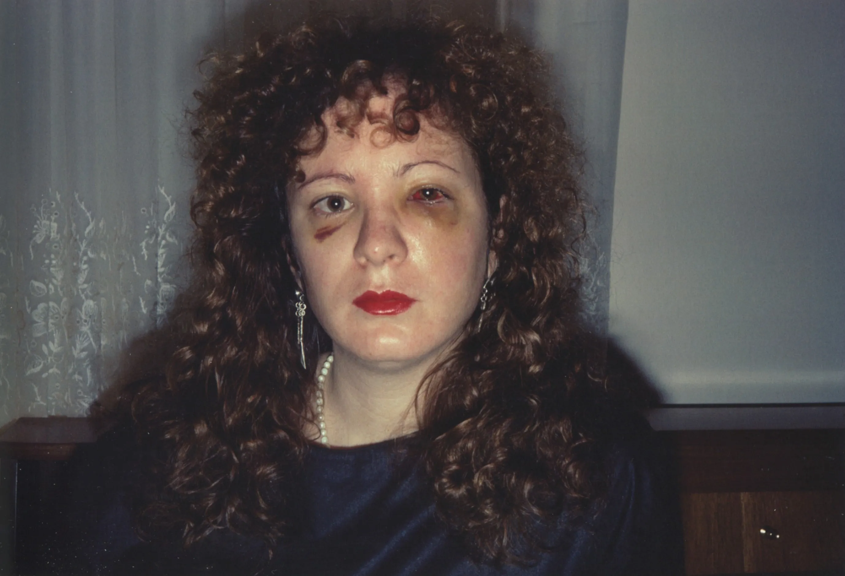 Nan Goldin (EEUU 1953) tuvo una infancia dura marcada por la soledad y los cambios. Tras la separación de sus padres y el suicidio de su hermana comienza una particular danza por casas de acogida. Esta falta de arraigo familiar hace que sus amigos y amigas se conviertan en sus verdaderas raíces y principales estrellas de su fotografía. Una fotografía personal y cercana, más propia de la instantánea que de la representación figurativa. Comenzó fotografiando en blanco y negro pero no tardó en dejar constancia de su mundo a todo color.